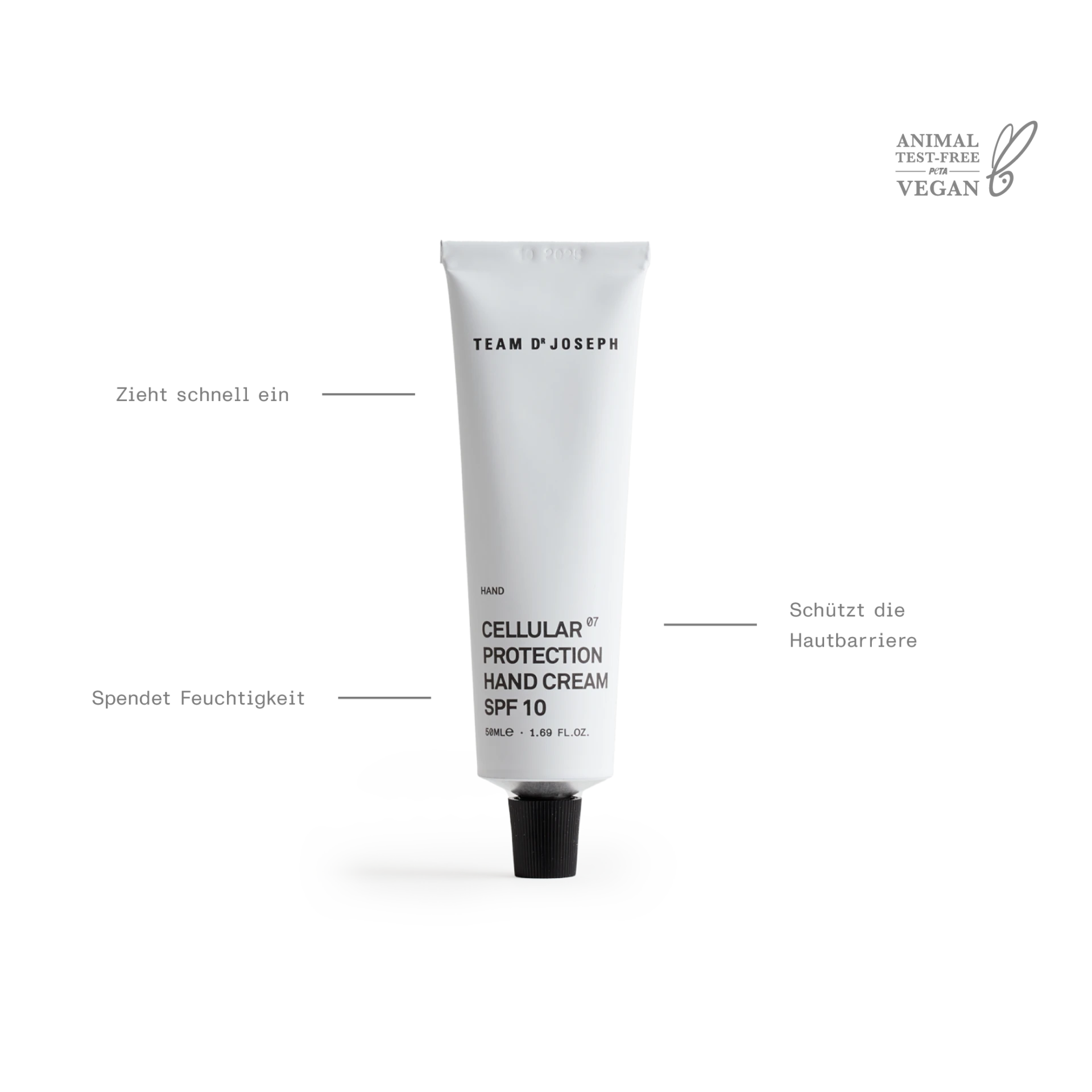 - Feuchtigkeitsspendende, schnell einziehende Handpflege