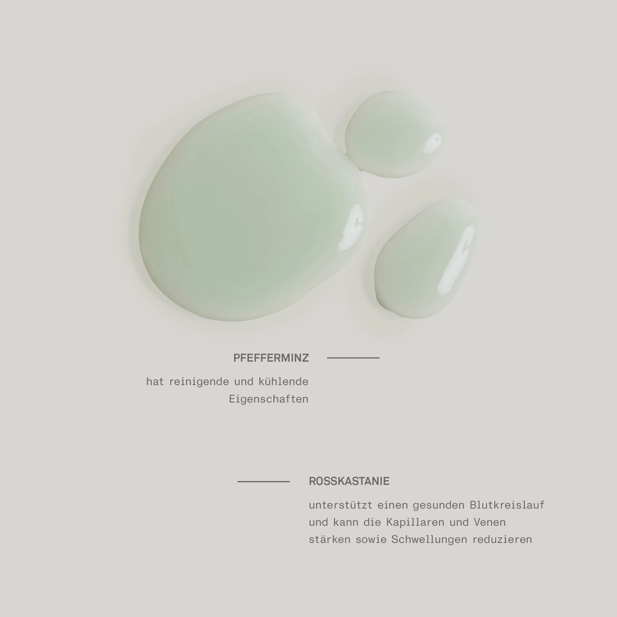 Auf die Beine auftragen und sanft einmassieren. Achten Sie darauf, auf keinen Fall die Augen zu berühren und waschen Sie Ihre Hände anschließend gründlich.